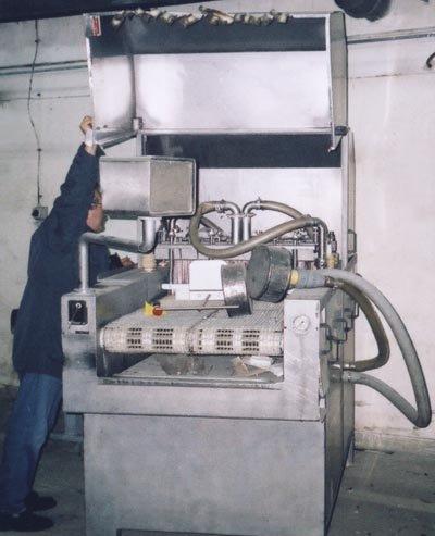 - Zdolność produkcyjna: 2,25 cm/sek. (prędkość transportera); szerokość: 800 mm.