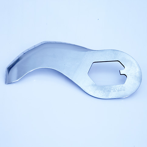 Oferujemy trzy różne kształty noży do kutrów : nóż do farszu na kiełbasy gotowane (R), nóż do kiełbas sucho peklowanych (RR), nóż do kiełbas surowych (RS).